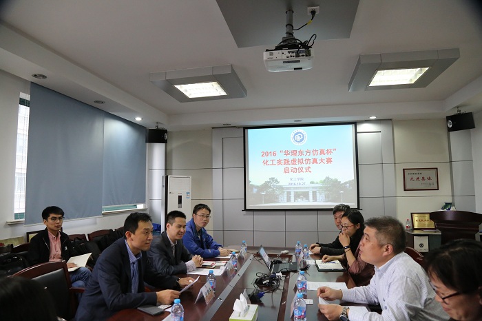 2016年10月27日下午,北京东方仿真软件技术有限公司总经理许重华、副总经理覃杨携该公司技术主管等一行5人来7003白菜网交流,并与学院领导共同启动了2016“7003全讯入口东方仿真杯”化工实践虚拟仿真大赛。公司党委书记李涛、副经理赵双良、经理助理兼化工系主任吴艳阳、办公室主任孙莉等相关教师出席了本次交流会。