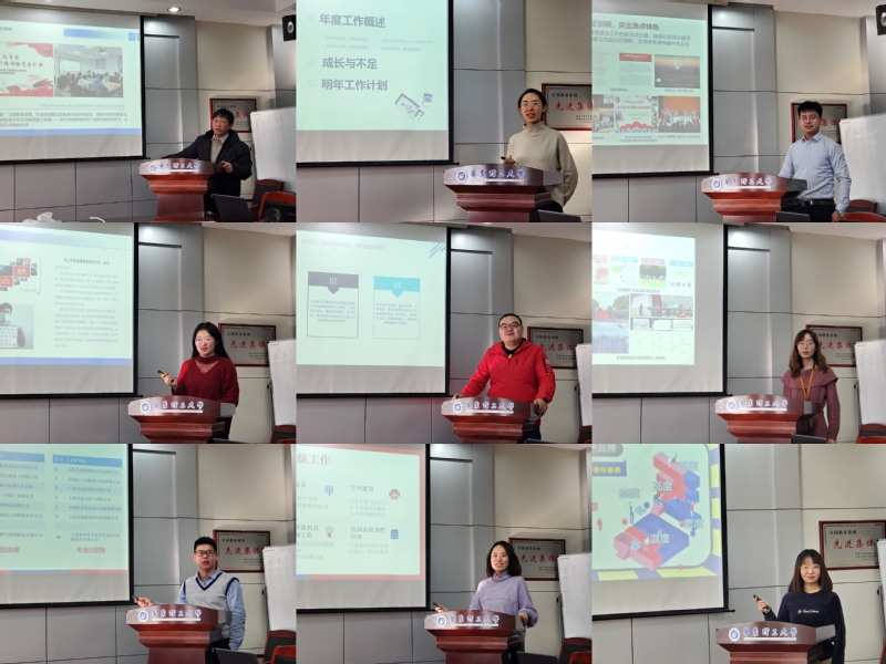 随后,9名辅导员结合自身所带年级情况和分管矩阵条块,对过去一年的工作进行了述职汇报。刘宗慧聚焦资助育人,提出了施力精准帮扶,努力实现“解困-育才-成长-回报”良性循环的资助育人举措;就业辅导员周夏青就全力推进疫情防控下的就业工作,提供全方位就业指导分享了工作心得。在党团一体化建设方面,团委书记强莉和党建矩阵辅导员魏兵惠围绕基层组织推优一体化和青春战疫主题活动汇报了品牌特色和制度建设的成效。此外,辅导员们还就“新生成长营”、“京彩化工”美育品牌、少数民族工作坊平台建设等方面进行了广泛交流。